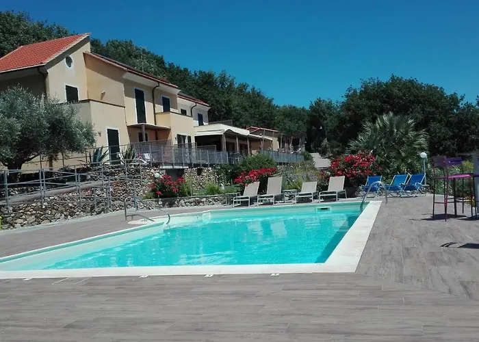 L'alloggio vanta una piscina con una terrazza prendisole.